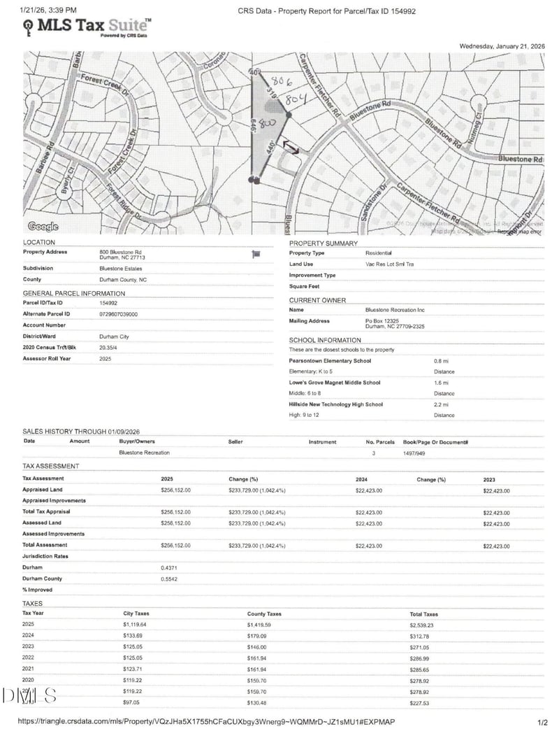 Listing details for 800 Bluestone Rd, Durham, NC 27713 : 800 Bluestone is also being sold along with 804 Carpenter Fletcher Rd. & 806 Carpenter Fletcher which are also land lots. 800 Bluestone have an abandoned pool located on the lot.