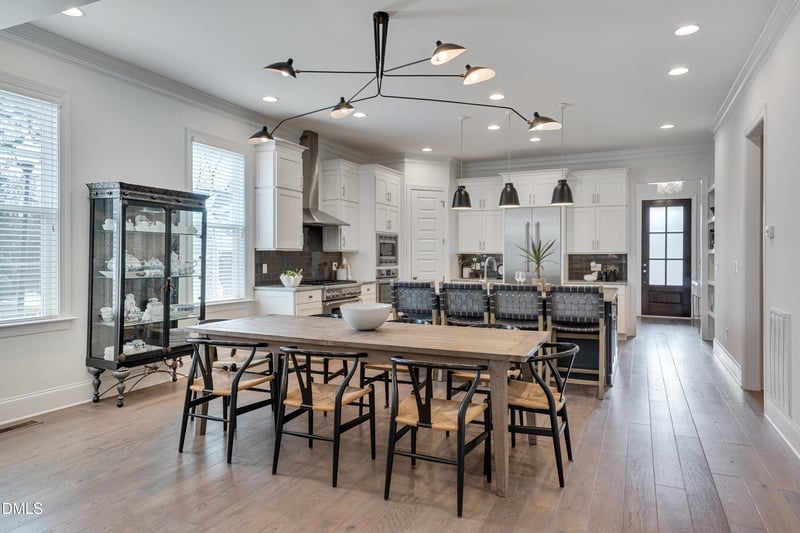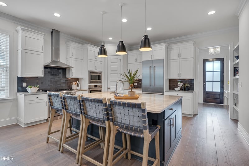 Listing details for 8027 Brandyapple Dr, Raleigh, NC 27615 : An Entertainer's Dream with a Private Outdoor Retreat! Situated on a premium corner lot on a cul de sac in a prime North Raleigh location, this well maintained custom built home offers seamless indoor outdoor living with a permitted four season room and a beautiful private fenced backyard. Featuring 4 bedrooms and 3 full bathrooms, the bright open floorplan is designed for comfortable first floor living, including a spacious primary suite, guest bedroom, full bath, and dedicated office on the main level. The chef's dream kitchen showcases granite countertops, custom cabinetry, an oversized island, and high end appliances, flowing effortlessly into the living and dining areas anchored by a wood burning fireplace. Engineered hardwood floors, crown molding, designer lighting, custom built ins, whole house water filtration, surge protector, and abundant unfinished attic storage add value and functionality throughout. A backyard gas hookup for grilling, a sprinkler system in the front, back, and side yards, and a charming vegetable garden adorning the yard complete this move in ready home offering exceptional quality in a vibrant and centrally located North Raleigh community.