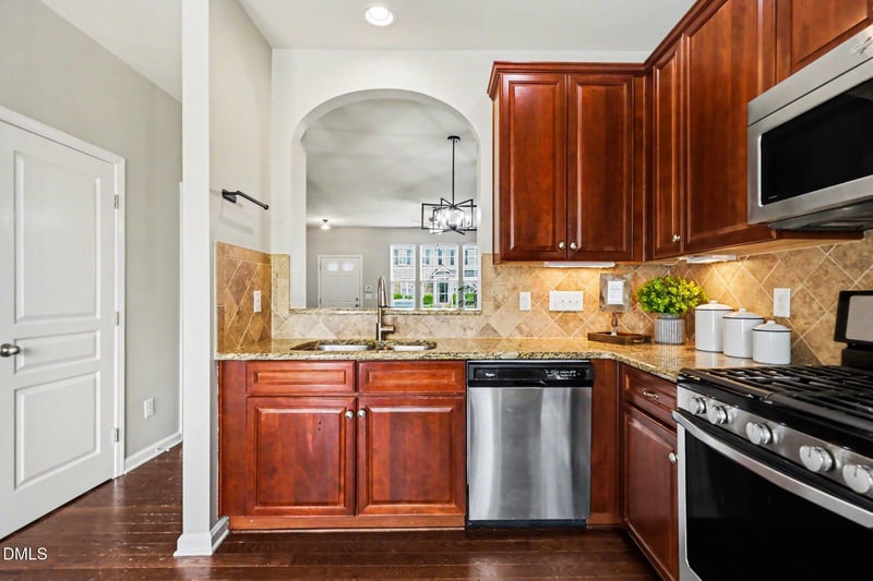 Listing details for 806 Cupola Dr, Raleigh, NC 27603 : Location, Value, and Move-In Ready townhome at your fingertips! 2 BR/2.5 BA with engineered hardwoods along with NEW carpet and fresh paint, make this the quick, one-stop gem you want and need. Open living on the 1st floor with connected kitchen complete with granite countertops, tile backsplash, SS appliances, and gas range. Upstairs has two spacious bedrooms with a primary en-suite bath. It backs up to minimal trafficked road, you get TWO assigned parking spots, and access to phenomenal community amenities-pool, gym! Close to DT Raleigh, NC State, I-40/440, and Dix Park. Don't miss out!