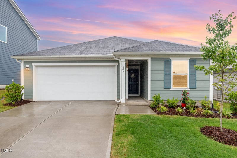 Listing details for 809 Doggard Ln, Durham, NC 27703 : Welcome to 809 Doggard Lane - ONE LEVEL detached home nestled in desirable Olive Grove! This 2024 single-family residence offers the perfect blend of modern design, energy efficiency, and everyday functionality—all set on a 0.14-acre homesite with thoughtful landscaping, fenced back yard, and cozy patio.