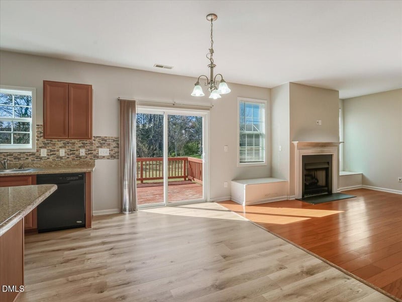 Listing details for 810 Howdenshire , Knightdale, NC 27545 : Step inside this charming 1800 square foot 3 bedroom+bonus home where warmth and functionality meet. Enjoy the open floorplan that brings family and guests together with ease, featuring a spacious kitchen with ample counter space and pantry storage. The sunny dining area opens to a large deck perfect for morning coffee or summer barbecues while overlooking the serene, flat backyard. The living room's inviting fireplace creates a cozy atmosphere to unwind after a long day. Upstairs you'll find a relaxing primary suite complete with dual walk-in closets and a private bath designed for comfort. Additional bedrooms and a versatile bonus room offer plenty of space to grow, work, or play. Thoughtfully designed with everyday convenience in mind, including a laundry room and generous storage options. Situated in a vibrant community with a pool, playground, and a pool house, this home offers a balanced lifestyle. With neutral tones and modern finishes throughout, it's move-in ready and waiting for you to make it your own. Experience easy living with popular amenities and a great layout in a convenient location.