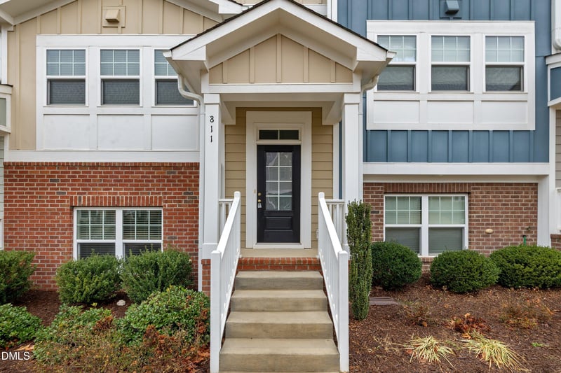 Listing details for 811 Winter Meadow Dr, Wake Forest, NC 27587 : Modern three-level 2021 townhome in The Willows offers 3 bedrooms, 2.5 baths, and a smart, flexible layout that lives comfortably across all levels. The lower level includes a true flex/bonus room with direct access from the 2-car garage, ideal for a media room, home office, or workout space. The main level features an open kitchen with white cabinetry, granite countertops, tile backsplash, stainless appliances, and a gas range, anchored by defined dining and living areas that open to a private deck overlooking wooded views, along with a convenient half bath. Upstairs, the owner's suite is thoughtfully separated from the secondary bedrooms and includes a walk-in closet and private bath, while two additional bedrooms share a full hall bath. Located just minutes from downtown Wake Forest's shops, restaurants, coffee spots, and breweries, with easy access to everyday retail, greenway trails, and community amenities including a pool and clubhouse, this home offers low-maintenance living with space, privacy, and convenience in a growing area.