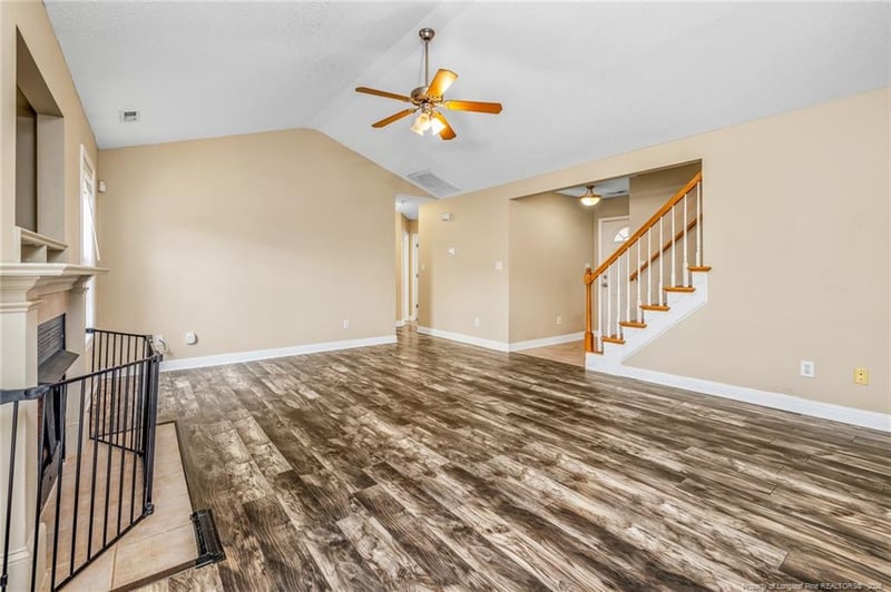 Listing details for 817 Bramblegate Rd, Hope Mills, NC 28348 : Welcome home to this inviting 3-bedroom, 2-bath home with a spacious bonus room. Just off the foyer is a generously sized living room with a cozy fireplace that opens seamlessly to the kitchen and eat-in dining area—perfect for everyday living and entertaining. The primary suite features a large walk-in closet and an ensuite bath with dual vanities, a garden tub, and a separate shower. Two additional guest bedrooms and a full bath are located on the main level. Laminate flooring runs throughout the living room, kitchen, dining area, and bonus room, with ceiling fans in all bedrooms. Upstairs, the large bonus room offers flexible space for a home office, playroom, or media room. Enjoy the private, fenced backyard with a deck ideal for summer barbecues. Conveniently located near Fort Bragg, shopping, and dining. HVAC is 2023 and Roof 2018. Close to Fort Bragg, restaurants & shopping.