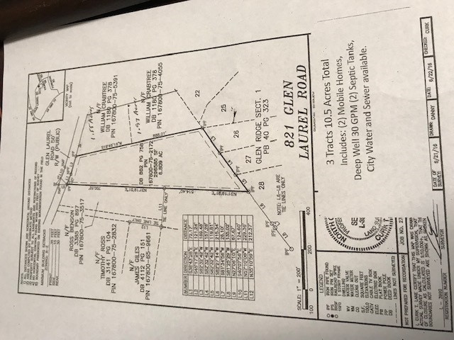 Listing details for 821 Glen Laurel Rd, Clayton, NC 27520 : 10.5 AC LAND, GREAT INVESTMENT PROPERTY, PROPERTY IS IN 3 TRACTS, POSSIBLE REZONING FOR MULTI FAMILY, WATER AND SEWER AVAILABLE, 2 RENTAL PROPERTIES ON THE PROPERTY, 2 SINGLE WIDE MH'S ON SEPTIC AND WELL.