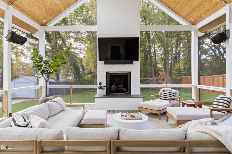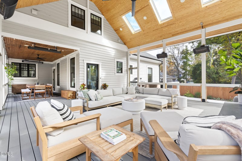 Step outside to a classic rocking chair front porch, or retreat to the show-stopping screened porch (added in 2022) with nearly 800 square feet of year-round living space complete with Trex decking, vaulted ceilings, skylights, a fireplace, and 4 natural gas heaters. It's the perfect outdoor living and dining space, no matter the season. No exaggeration, this is one of the best porches in Durham!