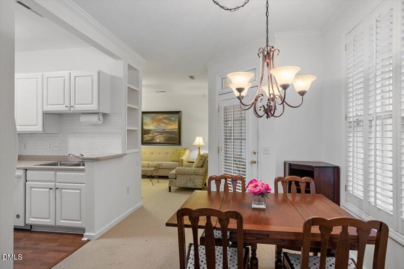 Listing details for 8241 Allyns Landing Way #301, Raleigh, NC 27615 : Welcome home to this beautifully updated top-floor condo, designed for those who want minimal upkeep without sacrificing style or comfort. With easy elevator access, secured entry, and a move-in ready interior, this upscale home offers the perfect 'lock-and-leave' lifestyle. Step inside to a bright and inviting living room, complete with a cozy fireplace and plenty of natural light. The kitchen is both functional and stylish, featuring modern cabinetry and a chic tile backsplash that flows effortlessly into the dining area, making it perfect for both cooking and entertaining. The spacious primary suite is a peaceful retreat with a large walk-in closet and a private full bath, creating the perfect place to unwind. The flexible office space with built-in bookshelves is ideal for working from home. Or, it can serve as an exercise area or be transformed into a wonderful guest room, thanks to the convenient access to a full bath. Throughout the home, plantation shutters add a touch of elegance, while the utility room provides additional storage space. A brand-new HVAC installed in 2025 allows for energy efficiency and worry-free comfort for years to come. Enjoy outdoor relaxation on your private balcony which also offers exterior storage. While this condo provides a true sense of community, it is also close to shopping, dining, and everyday conveniences. The nearby neighborhood lake with impressive fountain is also a place to enjoy. Don't miss out on this exceptional opportunity! This low-maintenance gem in highly desirable North Raleigh won't last long!