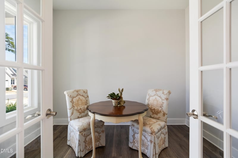 Listing details for 833 Whistable Ave, Wake Forest, NC 27587 : Impeccably maintained, beautifully styled, near-new home (completed November 2023) nestled in the intimate Live Oaks community of Wake Forest. This is a rare opportunity to own a thoughtfully designed 3-bedroom, 2.5-bath single family home appointed with high end upgrades throughout, situated on a beautiful lot with private forest view from your back patio. A spacious first-floor primary suite features a tray ceiling, upgraded Karastan carpet, luxury bath with walk-in double shower and seat, dual custom color vanity, natural stone veined countertop, designer beveled dual mirrors and light fixtures, and an oversized walk-in closet with built-in shelving. The open-flow main level showcases 10-foot ceilings, oversized trim and luxury vinyl plank flooring throughout. A beautifully appointed, upgraded Gourmet kitchen offers custom color off-white soft close cabinetry with roll out tray and upgraded range hood, large island for seating with upgraded trim work, natural stone veined countertops, upgraded GE cook top, Kitchen Aid French Door Refrigerator, a pair of beautiful designer pendant lights, and a generous sized pantry. The kitchen transitions seamlessly into the large dining room that accommodates all comfortably, and is anchored by a transitional, designer light fixture. The comfortable, yet classic main living space features a bay of large windows as well as a pair of transom windows, upgraded coffered ceiling and recessed lighting, designer light fixtures, and direct vent gas log fireplace with upgraded marble surround and hearth. Additional features of the main level include a foyer with designer lighting, two storage closets, and a multi-purpose room featuring expansive natural light and French doors that can be used as an office/den. A spacious powder room and conveniently located laundry room include a LG Stainless Steel washer/dryer pair and upgraded additional water hook up. Outside, you will enjoy the covered back patio and private yard - perfect for relaxing, with yard and roof maintenance included in the monthly assessment for carefree living. The second level, which features 9-foot ceilings, oversized trim and neutral carpet, includes a large family room, two additional bedrooms, and a full bath with double vanity, natural stone veined countertop, acrylic fixtures, and upgraded mirrors and light fixture. A large, walk-in attic area and separate mechanical room provide great storage options. Adding to the timeless curb appeal of this home are fiber cement siding, brick accents, and a professionally landscaped lot with beautiful trees and plantings. Additional upgrades include a painted garage, tankless water heater and dual zoned heating and air conditioning.
