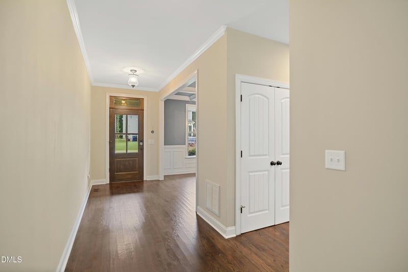 Listing details for 8529 Hurst Dr, Raleigh, NC 27603 : Immaculate & move in ready home in convenient Raleigh location nestled on .61 acre lot. Site finished oak hardwood floors throughout home (no carpet). Formal dining room includes coffered ceiling & wainscoting. Spacious family room has gas log fireplace. Bright & open kitchen offers granite countertops, stainless steel appliances (gas range) & tile backsplash. Sunny breakfast nook. 1st floor primary suite features granite top dual vanity, deep soaking tub & separate tile shower with bench & walk in closet with built-ins. Huge bonus room with closet and separate office/flex room with closet. Oversized 2 car garage. Screen porch overlooks stunning backyard.
