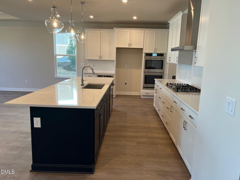 Enjoy effortless ranch-style living with an open concept layout that brings modern elegance and everyday functionality together. The gourmet kitchen is a chef's dream featuring double ovens, a top load microwave, vented hood, and high-end finishes throughout. The expansive island and adjacent dining area seamlessly connect to the living room with 12x8 sliding glass doors leading to your covered patio with a cozy outdoor fireplace—ideal for morning coffee or relaxing evenings under the stars.