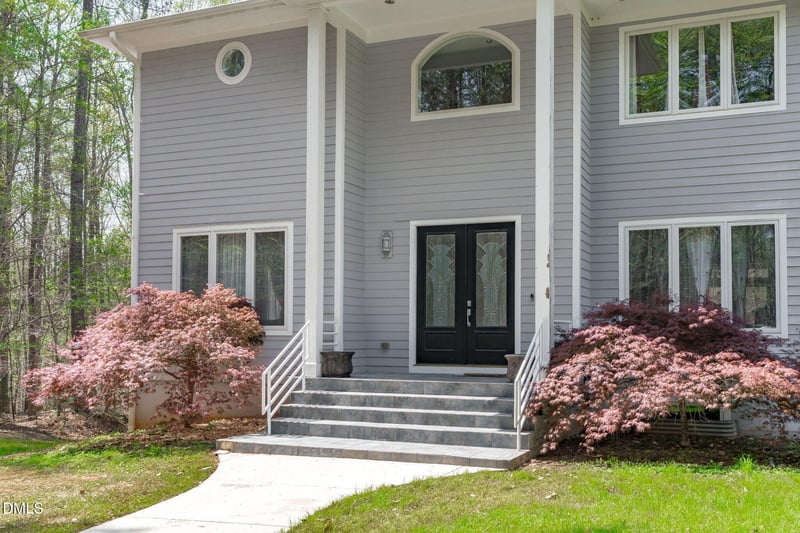 Listing details for 8607 Yorkshire Ln, Chapel Hill, NC 27516 : Set gracefully beyond a long private driveway to a circular drive, this private estate unfolds across 5.52 serene acres, offering a rare blend of architectural presence and refined livability. Thoughtfully designed for both grand entertaining and everyday comfort, the residence features 6 bedrooms and 6 full baths, each space curated with a sense of balance, scale, and understated luxury. At the heart of the home, an expansive open-concept layout invites an easy flow between living, dining, and gathering spaces. The chef's kitchen is both functional and beautiful--anchored by generous workspace, elevated finishes, and seamless connectivity to the main living areas, creating an ideal setting for hosting or quiet evenings at home. Dual dishwashers, a built in refrigerator and spacious pantry. Prep island and double ovens. Gorgeous custom cabinetry. French doors extends the living experience outdoors to a huge deck, where views of the surrounding landscape provide a tranquil backdrop for al fresco dining and year-round enjoyment. The fully finished lower level offers exceptional versatility, designed to adapt to your unique needs. Whether envisioned as a multi generational space, private home office, creative studio, recreation lounge, or all of the above, this expansive space is complemented by abundant storage and the flexibility to evolve with your lifestyle. Completing the property is a three-car garage and the rare advantage of county taxes, all within the highly regarded Chapel Hill-Carrboro school district--delivering both prestige and practicality in one exceptional offering.
