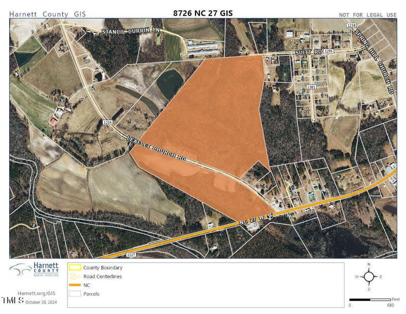 Listing details for 8726 Nc 27 , Lillington, NC 27546 : Prime Location in Growing Harnett County!! Amazing Opportunity to develop 90+ acres in Lillington with County Water and Road frontage on NC 27 and Leaflet Church Rd!! Short commute to Fort Bragg and close proximity to Anderson Creek Golf Course!! Western Harnett High School is 2 miles.