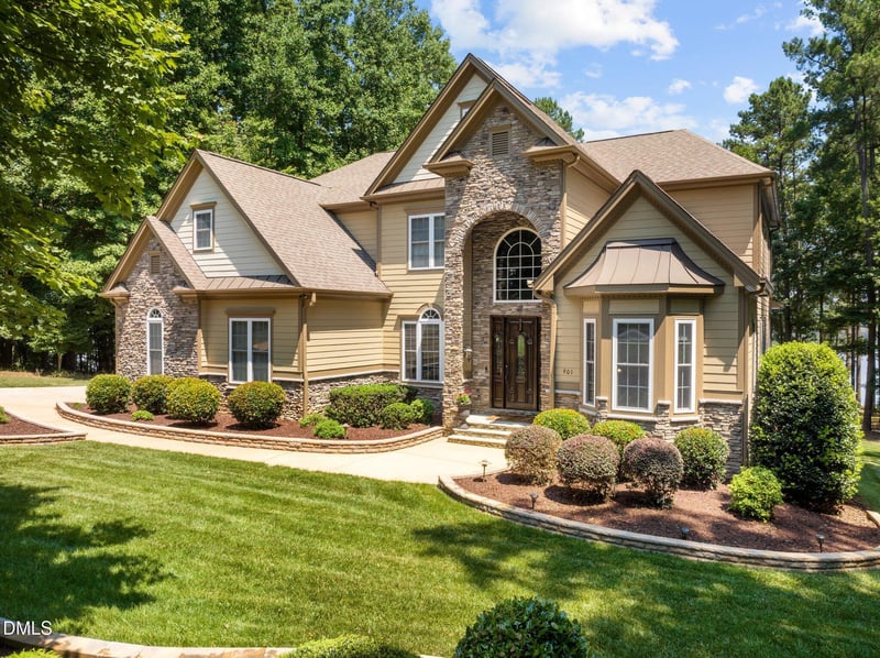 Listing details for 901 Edgewater Dr, Garner, NC 27529 : Price Adjusted down to $2,325,000!!! Stunning Lake Benson lake front home with exceptional design and meticulous attention to detail. MULTI GENERATIONAL living. A true sanctuary for those seeking harmony with nature and sophisticated living. You will hear beautiful birds, a breeze through the trees and no traffic. Tucked away on a 1.02 acre lot with 222 ft of shoreline. It offers exceptional blend of elegance and natural beauty boasting year round sunset views while being so convenient to major highways and an easy 20 minute commute to downtown Raleigh. Savor the allure of the ever changing water views and tranquility from the this 6062 sq ft, 3 level home. It offers 2 gourmet kitchens, four fireplaces, 2 laundry rooms, 5.5 bathrooms, 4 large bedrooms with ensuite bathrooms, office, formal and informal dining and a craft/gift room. The home theater is a one of a kind - luxurious with a custom painted ceiling that is beautifully unique. An all season room overlooking the lake makes this property magical.