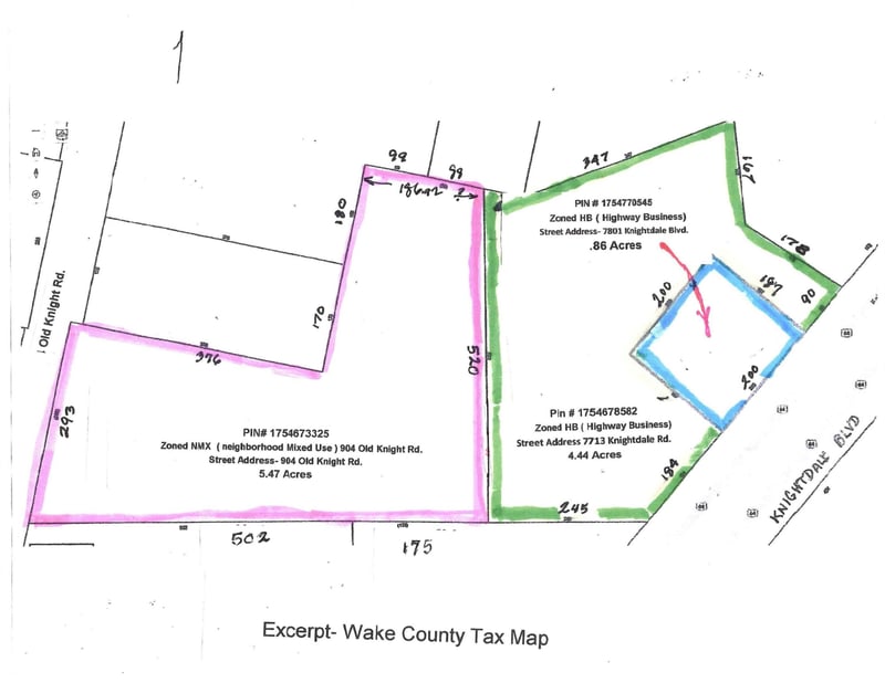 Listing details for 904 Old Knight Rd, Knightdale, NC 27545 : This property is exceptionally well positioned and zoned Neighborhood Mixed Use, (NMX) in Knightdale as several new residential communities within one mile are either in the planning stage or site work has begun for over 1,700 new homes. The Traffic Count on Old Knight Road has been published at 7,400 AADT and the count on US 64 Business near the Old Knight Rd is 24,000 AADT Water, sewer, natural gas and electricity is available. Contact agent for details. Please See Chapter 3 of the Knightdale UDO and the matrices in that chapter for specific uses within the NMX district.