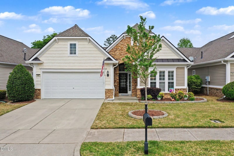Listing details for 904 Peltier Dr, Cary, NC 27519 : Welcome to Carolina Preserve! The most popular active adult community in the Triangle with an amazing clubhouse and clubs/activities galore. There is something for everybody. Beautifully maintained, mint-condition home featuring the popular Willow Bend floor plan. This light-filled residence offers a spacious eat-in kitchen with granite countertops, tile flooring and backsplash, stainless steel appliances, built-in desk space, pull-out shelving, plantation shutters, and recessed lighting. The elegant dining room showcases hardwood floors, picture frame molding, chair rail, crown molding, and ample space for a large dining table. The inviting living room features hardwood floors, crown molding, ceiling fan, and a high end Mendota fireplace with custom surround. Enjoy the bright sunroom with a wall of windows and hardwood floors, recessed lighting--perfect for relaxing year-round. The large primary suite boasts a tray ceiling, ceiling fan, and a wall of windows for abundant natural light. Pillows and bedding convey as they match the curtains. Enjoy a luxurious primary bath featuring porcelain tile flooring, double sinks, soaking tub, and a spacious walk-in closet. Additional highlights include a welcoming foyer with 12-foot ceilings, chair rail, picture framing, Palladian window, and 6-inch crown molding; handy laundry room with built in sink and cabinets/shelving; A private office with hardwood floors; and a secondary bedroom with a generously sized walk-in closet. Custom window treatments throughout the home convey. Don't miss the gleaming hardwood flooring except for tile in the kitchen and bathrooms. . Recent updates include oversized/new gutters (2020), roof in 2021, a/c in 2018, hot water heater in 2019 and an epoxy-coated garage floor. Lots of built in shelving in the garage. This exceptional home combines comfort, style, and low-maintenance living in a highly sought-after active adult community. Don't miss this gem, it will go fast!