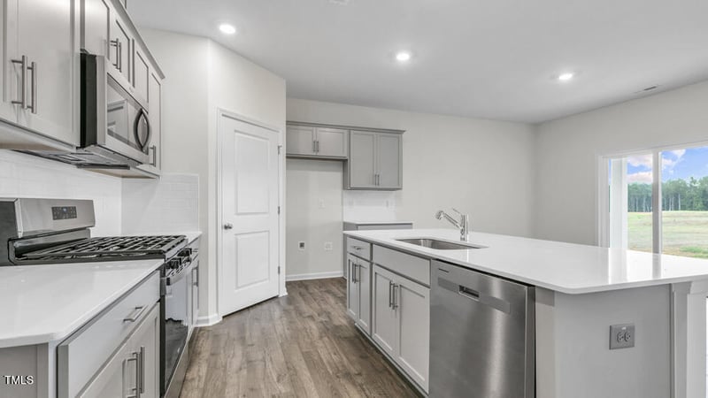 This thoughtfully designed community in Wake County will feature a wide array of single-family homes and townhomes with gathering spaces throughout to stay connected with friends and family. Introducing the Cali floorplan! The Cali offers 4 bedrooms, 2 bathrooms, 1,764 sq. ft. of living space, and a 2-car garage. You are welcomed by a warm and inviting foyer that seamlessly flows into the heart of the home. The open living area includes a bright and airy living room, a dining space, and a well-appointed kitchen, complete with stainless steel appliances, a corner walk-in pantry, and a generous island with a breakfast bar, ideal for casual meals and entertaining. The private primary suite is a true retreat, offering a large walk-in closet and a luxurious en-suite bathroom with dual vanities and a separate shower. Featuring 3 additional bedrooms and a full bathroom are thoughtfully positioned on the opposite side of the home, providing privacy and flexibility for family or guests. Step outside to the covered rear porch, perfect for relaxing evenings or hosting outdoor gatherings.