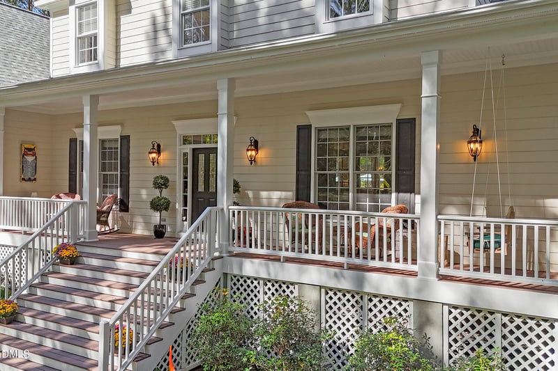 Listing details for 905 Olde Thompson Creek Rd, Apex, NC 27523 : Dreams really do come true! Once in a great while, a property comes along that is so special that you just can't stop thinking about it. 905 Olde Thompson Creed Road is that property. Amidst all of the vibrant Apex/Cary/Chatham County activity exists an oasis. Tucked away in a boutique neighborhood with custom-built homes on large homesites, the property is very private. The cleared and landscaped area around the home features a spectacular hardscape offering with swimming pool. The rest of the acreage is wooded with a nice mix of mature hardwood trees and pines. The rocking-chair-style front porch overlooks the private front yard where you can sit and enjoy the temperate North Carolina weather. At the back of the home, you'll find a large deck, paver patio, inviting in-ground heated salt-water swimming pool, grilling area, and hot tub. There is also plenty of gardening area. Grow vegetables or your own supply of fresh flowers. In addition to the almost 4,000 square foot home with its 2-car attached garage, there is a second attached 2-car garage with a cabana and massive second floor deck. Do you enjoy woodworking or collecting vintage cars? Own a boat, kayaks, or bikes? This building will suit all your hobby and storage needs. The inside spaces of this home are equally amazing. It is custom built and features an open floorplan. The entry foyer is like a page from an architectural digest with a split stairwell with wrought iron spindles, large elegant chandelier, and cathedral ceiling. The dining room is delineated by beautifully-crafted cased openings and beadboard wainscoting. It is big enough to accommodate a large dining table for holiday gatherings. The family room is spacious and features a cozy fireplace. The kitchen has a farm-house feel. It is open to a large breakfast area which overlooks the verdant backyard. There is an island with designer wood countertop. The kitchen is a chef's delight with loads of cabinets and counter space, and a very large walk-in pantry. The kitchen has all stainless steel appliances including dishwasher, double-ovens, and Dacor gas cooktop. There is a convenient home office/music room with French doors on the main floor. The primary suite is also on the main level. It features a luxurious bath, walk-in closet, and gas-log fireplace with marble surround. The primary bath has tile floor, a large corner whirlpool tub, and a separate shower. A powder room and a large laundry room with sink complete the main level. The second floor offers the same level of architectural detail and elegance as the main floor. One stairway leads you to a generously sized loft area--perfect for relaxing, reading, and gaming. Adjacent to the loft is a bonus room. The bonus room is large enough to accommodate a pool table, and could serve as recreation room, a second home office, TV/media room, or be utilized as a playroom. There is also a bedroom and full bath on this level. The second stairway leads to additional bedrooms and a full bath. There is also a recreation room with ample attic storage space on both sides. The home has a 4-bedroom septic permit, but a total of six bed/bonus/flex/office rooms that can be used in a variety of ways. The home lives large yet feels cozy and intimate. It is a great home for entertaining, and also for quiet time with family. Step out into the outdoor living area with a heated, salt-water swimming pool, outdoor dining space, and hot tub. Enjoy relaxation, meditation, entertainment, exercise, or just personal well-being. Jordan Lake, Research Triangle Park, RDU International Airport, and charming downtown Apex are all about an eleven mile drive.