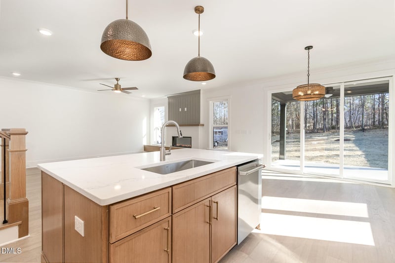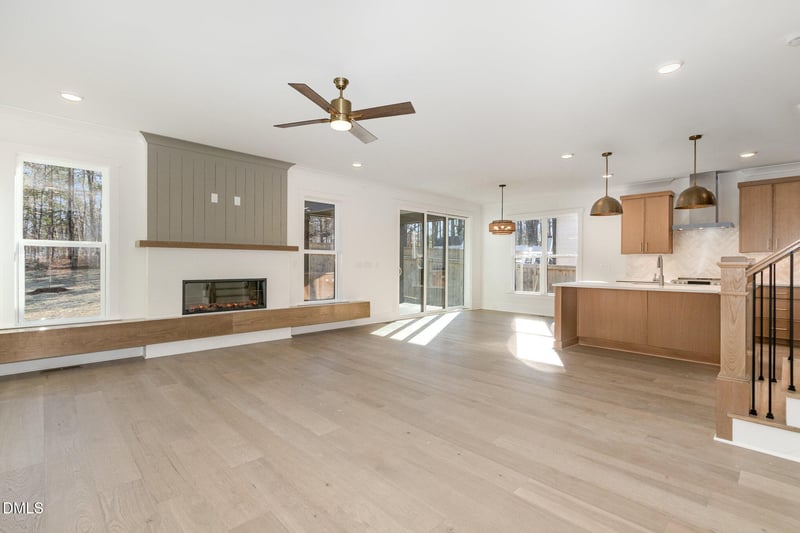 Listing details for 907 Danbury Dr, Durham, NC 27703 : Welcome to The White Oak, a thoughtfully designed new construction home offering elevated craftsmanship, refined finishes, and flexible living across three fully finished levels. This 5-bedroom, 3.5-bath residence spans approximately 2,549 heated square feet and blends modern functionality with timeless materials throughout. The main floor centers around a bright, open living and dining space anchored by a well-appointed kitchen featuring custom cabinetry, quartz countertops, a large island, walk-in pantry, designer lighting, and a statement hood. A three-panel sliding door opens to a screened rear porch, creating a seamless connection between indoor and outdoor living. Upstairs, the spacious primary suite includes custom built-ins and a spa-inspired bath with a fully tiled shower, frameless glass, and curated finishes. Three additional bedrooms, a secondary full bath, and a dedicated laundry room complete the second level. The finished third floor adds exceptional versatility with a fifth bedroom or playroom, pocket office, and full bath--ideal for guests, remote work, or a private retreat. Additional highlights include hardwood flooring throughout the main level and upper hallway, detailed interior trim, energy-efficient windows, EV charger prewire, structured wiring, and a sealed crawlspace. A covered front porch and attached two-car garage complete this thoughtfully executed home in a desirable Durham location.