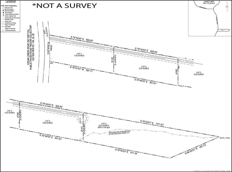 Listing details for 9123 C Cedar Creek Rd, Fayetteville, NC 28312 : Nestled on 3.5 serene acres, this cleared and level homesite at 9123 Cedar Creek Rd (Lot 3) offers the perfect canvas for your dream home. Located on a private road, the property is bordered by state game lands and a state park, providing unparalleled access to nature and outdoor recreation. Enjoy the convenience of being just a short walk to Jessup Pond, a prime spot for fishing and wildlife observation. With no deed restrictions or HOA, the possibilities are endless. Soil evaluation has been completed, streamlining the building process. All this, just 35 minutes from Fort Liberty—this property combines privacy, natural beauty, and convenience in one incredible package! Approx .5 acres not cleared at rear of lot.