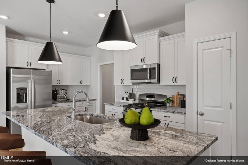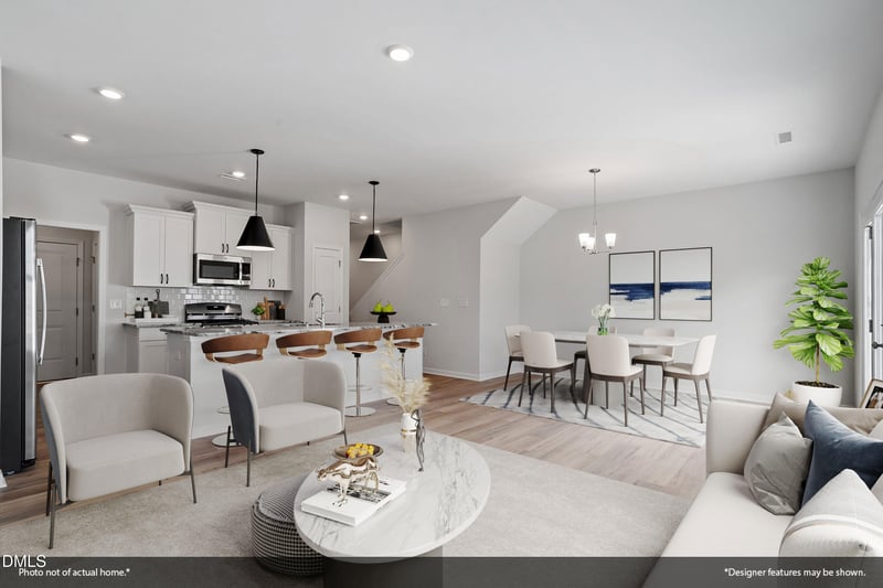 Listing details for 915 Westerland Way #81, Durham, NC 27703 : The Home blends modern comfort with thoughtful upgrades, offering a stylish and functional living space. Hardwood stairs lead to the upper level, while the first floor features durable luxury vinyl plank flooring throughout, creating a seamless and low-maintenance foundation for everyday living. At the heart of the home, the kitchen is designed to impress with a large island perfect for entertaining and a GE Profile series gas range that elevates your cooking experience. The open layout flows effortlessly into the great room, making it ideal for gatherings and relaxation. The primary suite is a true retreat, highlighted by an elegant tray ceiling and a luxurious en-suite bathroom featuring a walk-in tile shower with a bench seat and a frameless glass door. Additional conveniences include a built-in pet pad and Cat5 Ethernet readiness in the bedrooms and great room, ensuring comfort and connectivity throughout the home.