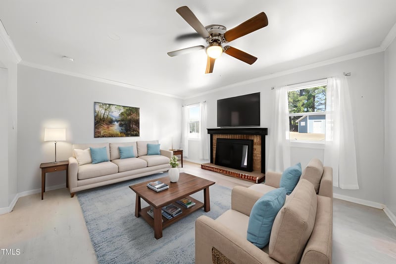 Listing details for 916 Clayton Rd, Durham, NC 27703 : UPDATED AND MOVE-IN READY BRICK RANCH! Enjoy easy, one-level living just minutes from everything Durham has to offer. This charming home features a rocking chair front porch, luxury vinyl flooring throughout, and fresh interior paint. The cozy living room includes a fireplace, and the updated kitchen offers a walk-in pantry. A flexible mudroom off the garage can serve as an office or sitting room. Both bathrooms have been beautifully updated. Additional upgrades include new windows, a new roof, and new gutters. Outside, relax on the spacious back deck overlooking the yard. The paved driveway provides ample parking and leads to a two-car side-entry garage. Need extra storage? There's a large storage shed in the backyard. All this with no HOA, county taxes, and city water and sewer—plus an unbeatable location close to Duke, Downtown Durham, DPAC, Brier Creek, RTP, the airport, and major highways. Don't miss this move-in ready gem!