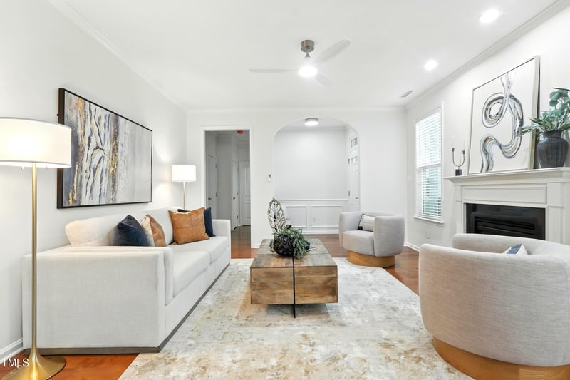 Listing details for 9201 Wooden Rd, Raleigh, NC 27617 : Sophisticated Executive Townhouse - End Unit in a Prime Location Discover refined living in this modern, end-unit executive townhouse where style and comfort blend seamlessly. Designed with convenience in mind, the main level features a spacious primary suite with an elegant tray ceiling and a secondary bedroom with its own full bath—ideal for flexible living arrangements. Step inside to find a bright, open layout enhanced by fresh interior paint, gleaming hardwood floors on the main level, and brand-new luxury vinyl plank flooring upstairs. The second floor offers a generous loft, private office with French doors, an additional bedroom, and another full bath—perfect for work-from-home needs, guests, or hobbies. Every detail has been thoughtfully upgraded: under-cabinet lighting, modern fixtures throughout, smart home features including Google Nest hubs, and new designer lighting from entryway to bedrooms. HOA-maintained exterior and roof ensure effortless ownership and peace of mind (see HOA maintenance sheet for details). Situated just minutes from RTP, RDU Airport, I-540, top hospitals, shopping, dining, and Brier Creek Country Club, this home provides exceptional access to everything the Triangle has to offer. *Some photos have been virtually staged* With premium smart-home technology, including Google Fiber, a new Google Wifi mesh system with three access points, and a Nest hub, you'll enjoy seamless connectivity and comfort.