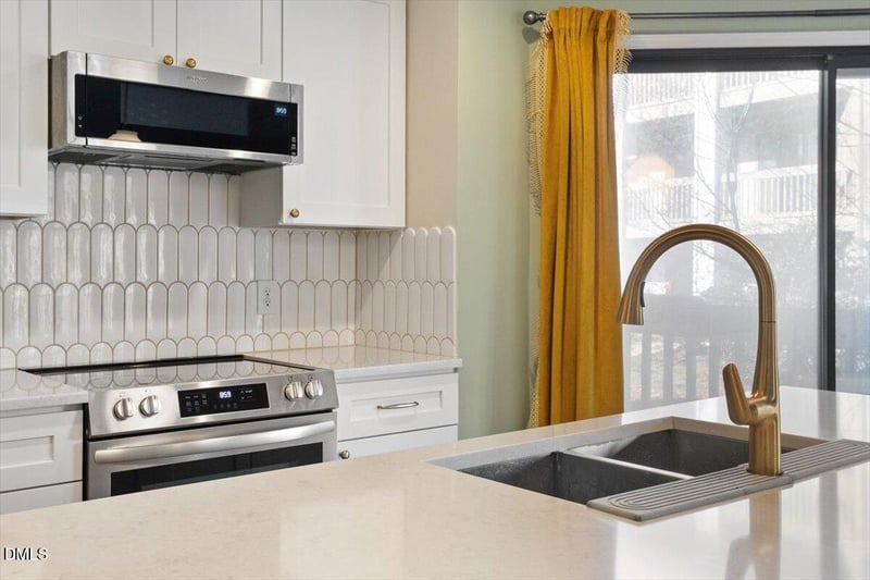 Listing details for 924 New Kent Pl, Cary, NC 27511 : New Kent Village sits quietly as Cary matures next door. Adjacent to Kildaire Farm Road (think Trader Joes), it is an easy hop up to Downtown Cary, down to more shopping, or over to US1. However, this updated condo has access to walking trails and peace when a respite is needed. Recent kitchen renovation highlights the open concept feel and makes for easy living with white cabinetry, quartz, tile and real brass hardware. Small in size, but mighty in function, the layout still retains opportunity for imagination with good closet space and bathroom size. Private deck and covered entry protect spaces as needed. Quite the convenience to consider living here, but even to have something as turn key hit the market in this location.