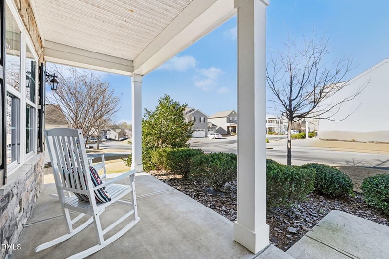 Listing details for 93 Thornbury St, Clayton, NC 27527 : Beautiful, move-in-ready 5BR/3BA home in sought-after Flowers Plantation with a rare 3-car garage! Freshly painted throughout with new LVP flooring, new fencing, and washer, dryer, and refrigerator included so you can move right in. The main level features an open floor plan with a private guest suite, chef's kitchen with granite countertops, ample workspace, walk-in pantry, casual dining, and a formal dining room or flexible den. Upstairs offers a spacious family room wired for sound with built-in entertainment center, plus a balcony perfect for sunset views. The primary suite includes a soaking tub, separate shower, and oversized walk-in closet. Three additional bedrooms, a shared full bath, and a dedicated laundry room complete the upper level. Enjoy multiple outdoor living spaces with two front porches, a screened porch, and a back patio overlooking a private wooded backyard. Located in the highly desirable Flowers Plantation community, residents enjoy over 30 miles of walking and golf cart trails, 100+ acres of wildlife preserves and buffers, lakes, shopping centers, multiple schools, medical offices, no city taxes, and the nearby East Triangle YMCA. Just around the corner from the upcoming waterfront district offering a vibrant social scene, only 10 minutes to charming historic downtown Clayton and 25 minutes to downtown Raleigh.