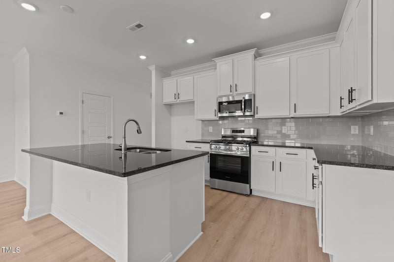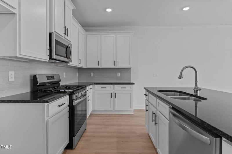 Listing details for 935 Alma Railway Dr #554, Wake Forest, NC 27587 : Built by McKinley Homes-- Situated in the heart of downtown with single family homes, townhomes, swimming pool and clubhouse with fitness center coming Summer 2026 and commercial space! Located inside city limits with city water & sewer. Minutes away from dining, shopping & Joyner Park! The Kennington plan-- with a 1-CAR, REAR ENTRY GARAGE! Offering upgraded LVP flooring throughout the main living! Stariway with open railing and wrought iron balusters. Kitchen: features 42'' custom white cabinets with crown molding, soft close doors and brushed nickel hardware, timeless granite countertops, subway tile backsplash, stainless sink with brushed nickel faucet, large island with barstool seating, stainless appliances, crown molding, recessed lighting and pantry! Owner's suite: with trey ceiling with crown molding, plush carpet, ceiling fan with light and huge walk in closet! Owner's bath: offers tile flooring, painted dual vanity with granite countertop, tile surround walk in shower with double niche and private water closet! Open and spacious family room: features LVP flooring, linear eletric fireplace with ceiling-height shiplap surround, crown molding and ceiling fan with light! Large rear patio, 1-car garage and so much more!