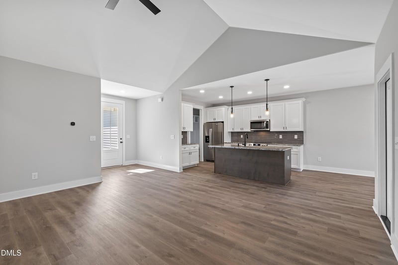 Listing details for 9400 Turkey Way, Middlesex, NC 27557 : Welcome home to 9400 Turkey Way, a beautifully crafted semi-custom ranch offering exceptional style, comfort, and value. Set on a spacious 0.92-acre lot, this thoughtfully designed home features an open-concept layout with just over 1,500 square feet, 3 bedrooms, and 2 full baths—perfectly sized for easy living without sacrificing quality. The inviting living area is anchored by a stunning floor-to-ceiling shiplap electric fireplace with a cathedral ceiling, creating a warm and impressive focal point. The kitchen is equally impressive with premium soft-close cabinetry, Level 2 granite countertops, a stylish tile backsplash, stainless steel apron-front deep single-bowl sink, pantry with ¾-inch wood shelving, and a 5-burner range with convection bake and broil plus a built-in air fryer. The refrigerator conveys, adding even more value. The private primary suite offers a luxurious tiled walk-in shower, Moen and Delta fixtures, and a custom designer closet. Luxury vinyl plank flooring runs throughout the home, complemented by craftsman-style trim with 6-inch baseboards and ceiling fans in all bedrooms. Additional features include a laundry room with an abundance of built-in cabinetry, custom drop zone, a covered screened back porch ideal for relaxing, a covered front porch with a striking 8-foot ¾-glass door, sealed crawlspace, energy-efficient YKK windows, brick foundation, 30-year architectural shingles, a whole-home water softener filtration system, and a 2-car garage. A rare opportunity to own a semi-custom ranch on nearly an acre at an affordable price—this home truly checks all the boxes.