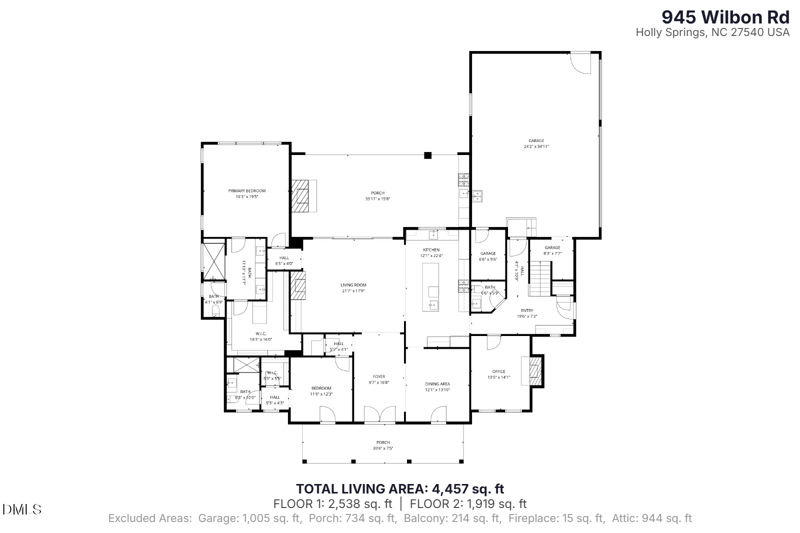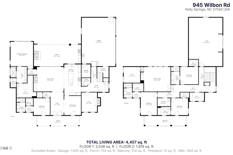 This beautiful 4 beds 6 baths home is located at 945 Wilbon Rd, Holly Springs, NC 27540 and is listed for sale at $1,350,000.00. This home was built in 2026, contains 4457 square feet of living space, and sits on a 0.94 acre lot. This residential home is priced at $302.89 per square foot.