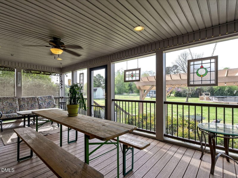 Listing details for 9721 Weathering Ct, Zebulon, NC 27597 : No HOA! Thoughtfully updated and refreshed in all the right places, this charming all-brick ranch sits on a fenced & nearly one-acre flat lot --offering you that peaceful, easy feeling the moment you arrive. Unwind at the end of the day on the expansive screened porch with your pup, or enjoy quiet evenings under the pergola as you cook dinner outdoors. With plenty of open space for your dream of an herb or vegetable garden or a game of fetch, this property is perfect for embracing a relaxed, outdoor lifestyle. Inside, the easy livin' vibe continues with updated flooring, a front to back main living area, refreshed kitchen featuring granite countertops, a remodeled bathroom, & warm touches of exposed wood trim that add just the right amount of character. Separate dining area and a laundry room off the kitchen too. Outside you'll also find multiple outdoor storage sheds to hold your pool gear and gardening supplies, and an extended driveway with plenty of room for guests--ideal for hosting gatherings or summer pool parties. Tucked away on a cul-de-sac street, this home truly feels like a hidden gem in the neighborhood.