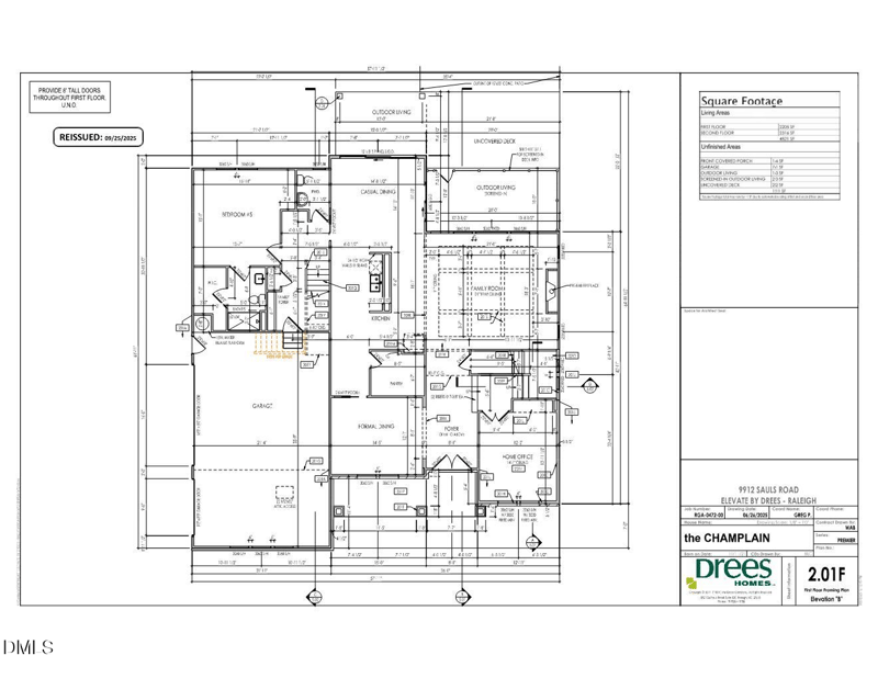 Listing details for 9912 Sauls Rd, Raleigh, NC 27603 : Experience elevated living in the highly sought-after Champlain plan by Drees Homes. This New Construction home offers an expansive 4,521-square-foot layout with 5 bedrooms, 4.5 baths, a 3-car garage, private office, and an upstairs game room, all thoughtfully designed with flexibility for modern lifestyles. A dramatic coffered ceiling family room anchors the home and flows seamlessly into a beautifully appointed gourmet kitchen, perfect for entertaining, while a convenient first-floor guest suite provides added comfort for visitors. Upstairs, the luxurious primary suite serves as a true retreat with a spa-like bath. Situated on a breathtaking 3.1-acre homesite, this property also boasts an expansive deck and outdoor living space, creating the ideal setting to enjoy peaceful surroundings with room to roam. Blending elegant design, functional living spaces, and exceptional craftsmanship, this home delivers the perfect balance of luxury and everyday comfort.