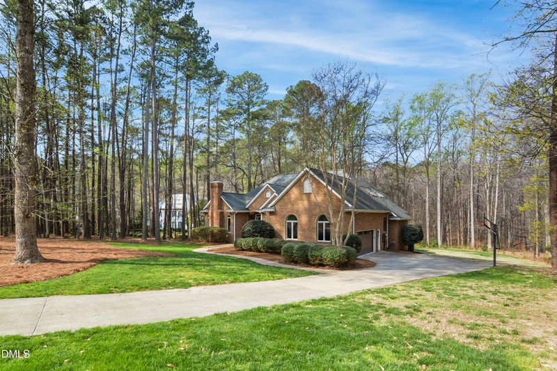 Listing details for 9933 Koupela Dr, Raleigh, NC 27614 : This stunning ALL BRICK 4 bed 4.5 bath ranch style home ticks all the boxes! Nestled on approximately 2 acres and backs to the protected Corp of Engineers/Falls Lake Land with direct access to Honeycutt Creek Greenway Trail. Several recent improvements including fresh paint and new carpet. Spacious family room features soaring cathedral ceiling, wet bar & wood burning fireplace with tile surround. 1st floor office includes French doors, vaulted ceiling & wood burning fireplace. Large formal dining room. Updated kitchen offers quartz countertops, center island, subway tile backsplash, pot filler, farmhouse sink & stainless steel appliances (Thermador gas range). Fantastic 3 season room with removable panels, tongue in groove cathedral ceiling, tile flooring, built-ins & a gas log fireplace with stone surround. Renovated 1st floor primary suite has trey ceiling, 2 walk in closets (1 cedar), updated quartz top dual vanities, custom soaking tub & oversized tile shower with frameless glass surround. 2 additional ample sized bedrooms on 1st floor with full bath. HUGE second floor bonus room closet + loft area. Lower level has a versatile flex space with bar area and full bath + storage area/workshop. Expansive deck (newly re-built) offers stunning panoramic wooded views! Oversized 2 car garage. Convenient to 540, RTP & RDU