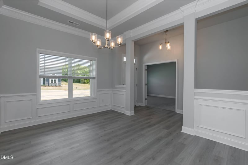 Greeted by a spacious front porch, this beautifully designed split-floorplan ranch offers both style and functionality from the moment you step inside. Vaulted ceilings create an open, airy feel upon entry, leading into a stunning formal dining room highlighted by tray ceilings, crown molding, and classic board-and-batten trim—perfect for hosting memorable gatherings.